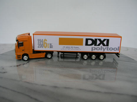 Zugmaschine und Auflieger sind aus Metall.